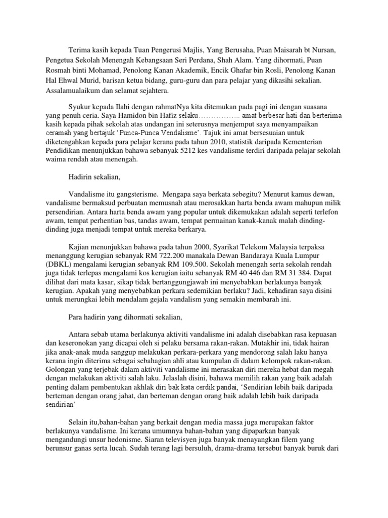 Teks Ceramah Sosial Bertajuk Vandalisme Yang Berleluasa Di Kalangan Remaja Pdf